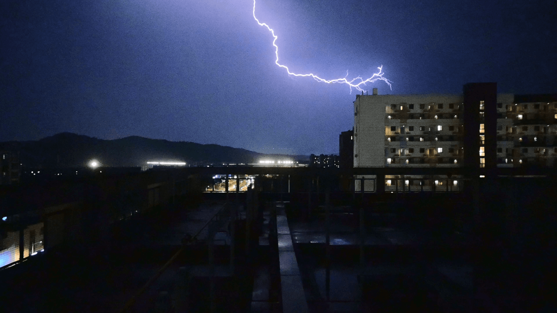 转眼就来到了一年最热的时候,也是台风频出的时候,暴雨强势登场,就有了下面两张闪电的照片,还好当时是用 120 帧视频模式录制的,不然也抓不到闪电⚡。