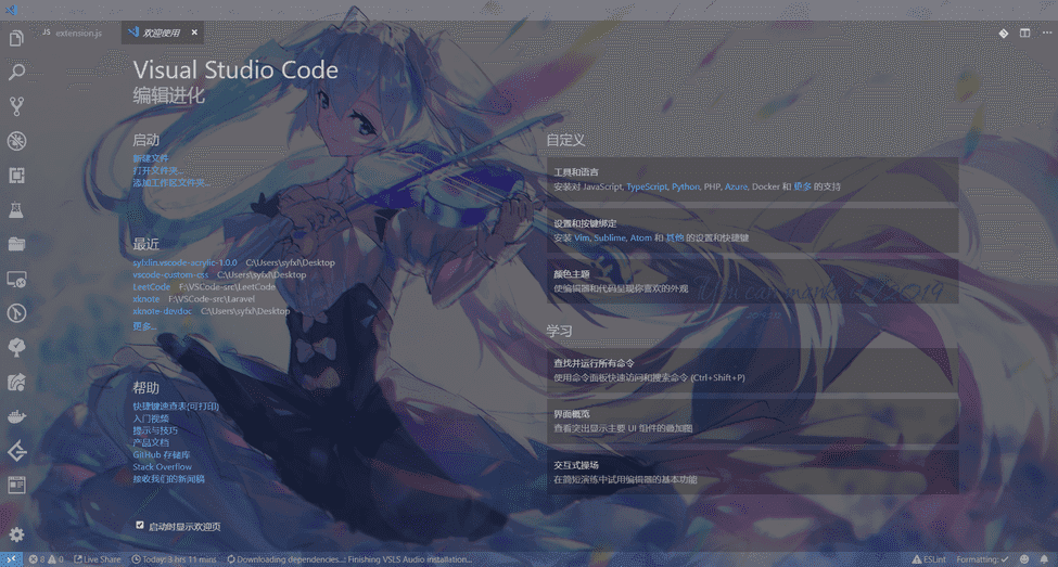 前几个星期一张带毛玻璃效果的 VSCode 的图片进入了我的视线,后来搜索了相关的设置教程发现只有 MacOS 才能启用这种效果,作为一个折腾青年,后来通过使用了ewc,VSCode 确实增加了 Acrylic 的效果,但是并不能使整个编辑器获得 Acrylic(第一次尝试是使用和 GlassIt-VSC一样的方式,即通过 JS 调用 Powershell 为 VSCode 窗口增加效果),可能是 CSS 没有写好,也可能是该方法不适用,反正最后放弃了折腾。直到昨天看到了 vscode-vibrancy ,该扩展使用的是 Acrylic 效果,Acrylic 效果虽然美观但是会出现拖动延迟的问题,而 Blur 效果和 Acrylic 相近并不会产生拖动延迟,于是便打算将 ewc (支持 Acrylic 和 Blur 等效果)通过 vscode-vibrancy 的方法加载进 VSCode,于是便有了这个扩展。