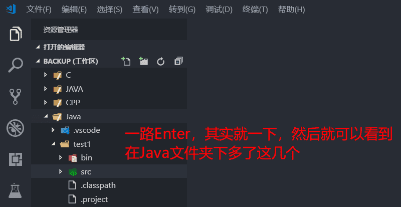 新版的 VSCode Java 插件已经可以直接创建项目,不再需要使用 Eclipse New Java Project 这个插件来创建项目了。